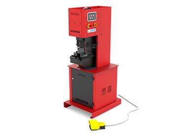 The electrical power necessary for a punching machine of about 40 tons like the MX340G model is 2.2KW / 3HP. For a model of about 70 tons like the MX700, 5.5KW / 7.5HP is required. The current depends on the voltage and the number of phases to which the machine is connected. For the tonnage power required by the punching machine, everything depends on the thickness, hardness of the material, and diameter of the punch. The formula to calculate if a machine has enough power to do the job is equal to the perimeter of the punch multiplied by the thickness, multiplied by the hardness of the material. Each material has a different hardness. For example, iron has a hardness between 32 and 45 Kg/m². Stainless steel 55 to 65 Kg/m², aluminum can vary from 20 to 28 Kg/m². Required tonnage = Perimeter x thickness x hardness of the material.