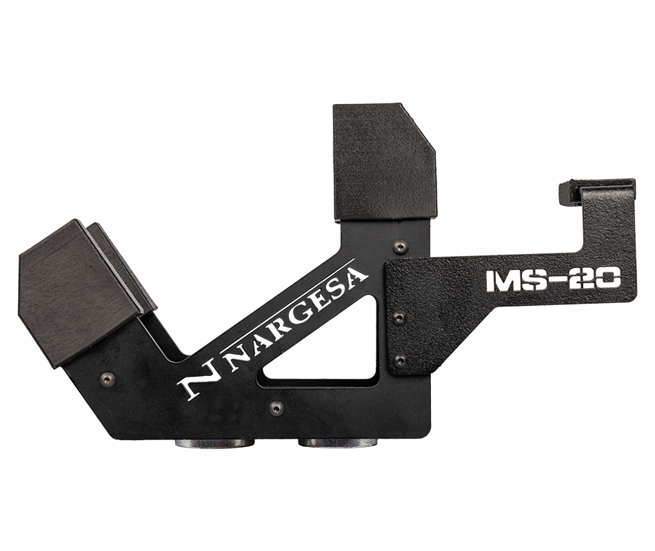 Soporte ergonómico para el cabezal de soldadura láser. Estructura de acero con acolchado de plástico técnico que protegen la antorcha al dejarla en reposo. Acabado negro texturizado diseñado para la MS20.