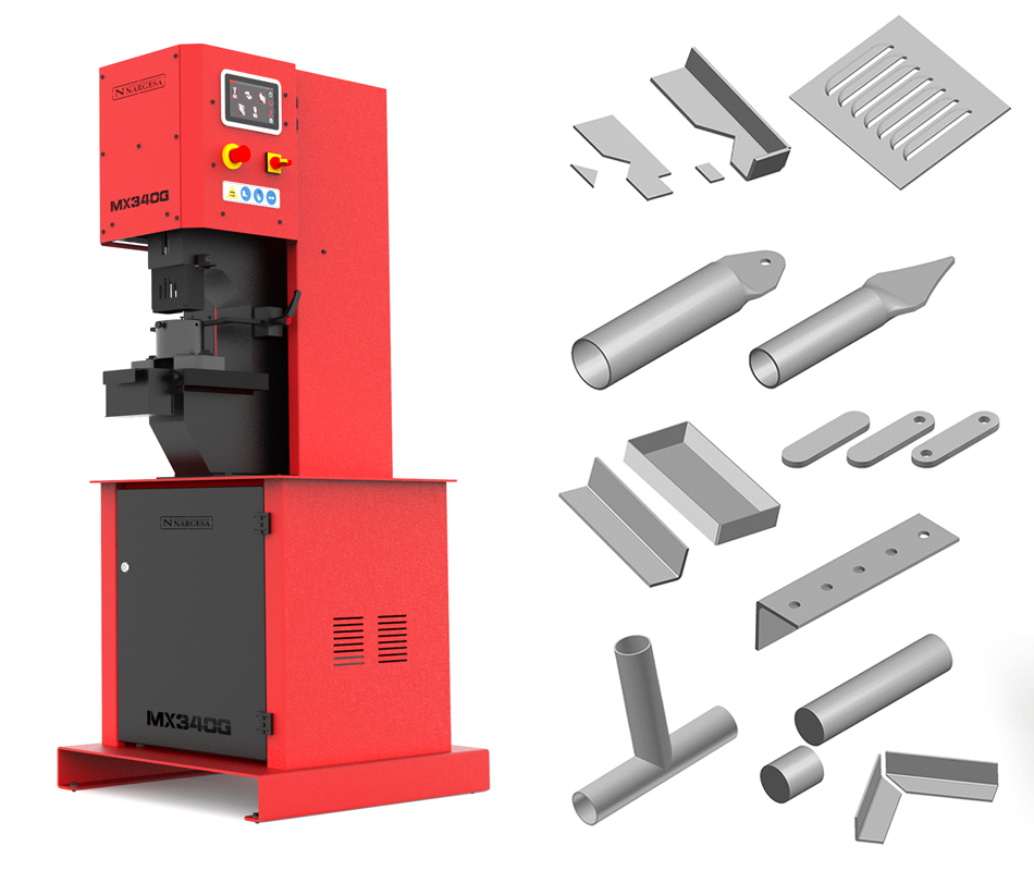 La Punzonadora Multifunción MX340G CNC NARGESA de 40 toneladas destaca por su gran versatilidad. Permite realizar múltiples operaciones como punzonado en diferentes perfiles (chapa, tubo, ángulo, UPN, IPN…), así como plegado, corte, embutición, troquelado, abocardado...